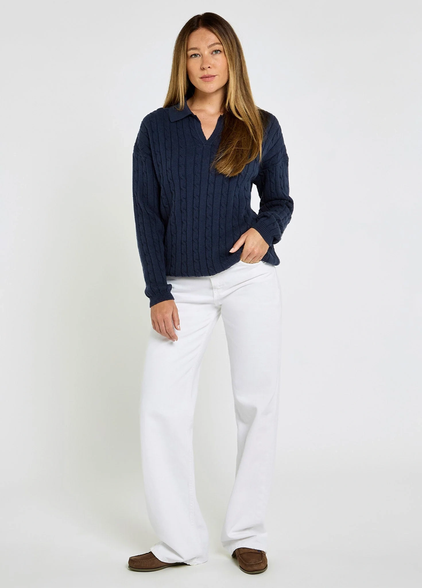 Dubarry Brownville Merino Blend Trui – Preppy & Nautische Kabeltrui Navy navy