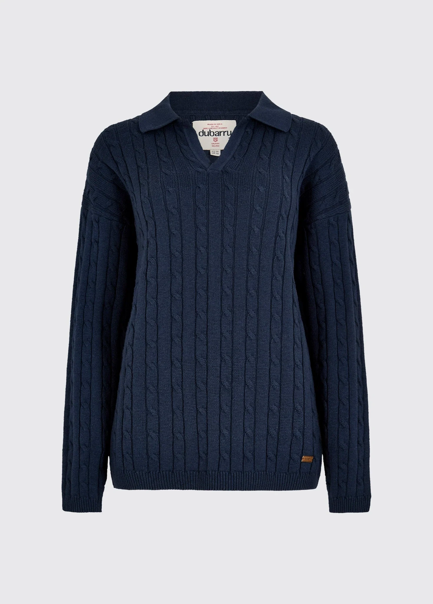 Dubarry Brownville Merino Blend Trui – Preppy & Nautische Kabeltrui Navy
