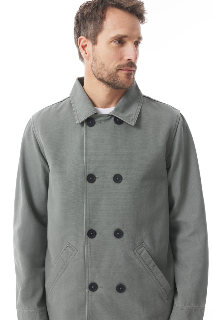 De klassieke elementen zoals de dubbele knoopsluiting en de kraag blijven behouden, maar worden gecombineerd met een relaxte pasvorm en praktische details. Hierdoor is de jas ideaal voor dagelijks gebruik, of je nu in de stad bent of aan de kust.