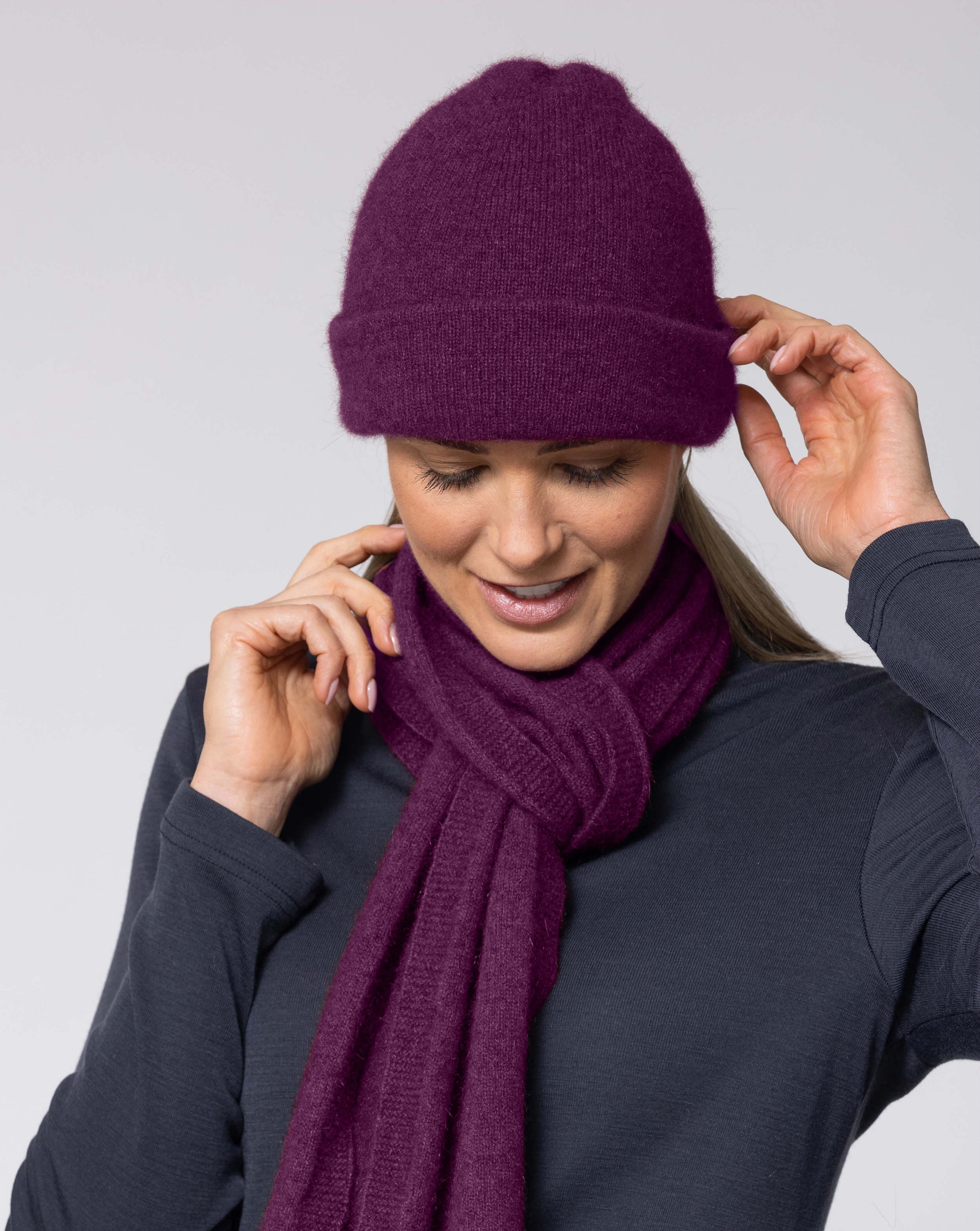 Gemaakt van een premium blend van 40% possum, 53% merino wol en 7% zijde, voelt deze muts zacht en lichtgewicht aan, terwijl hij uitzonderlijk warm blijft. Het holle vezelkarakter van possumvezels biedt extra isolatie en vermindert pilling, merino wol voegt ademend vermogen toe, en zijde zorgt voor een subtiele glans en luxueuze touch.
