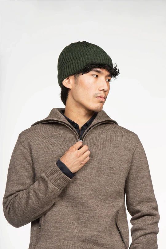 De Wieger wordt gemaakt van een duurzame wol kwaliteit, gesponnen door Schoeller. Dit garen onderscheidt zich door haar kwaliteit. Dit 100% wol garen benadert de zachtheid van Merino wol, maar heeft de sterkte van scheerwol. Zo kan de trui zelfs tegen zeewater. Deze eigenschappen heeft dit garen zonder dat het stug is.