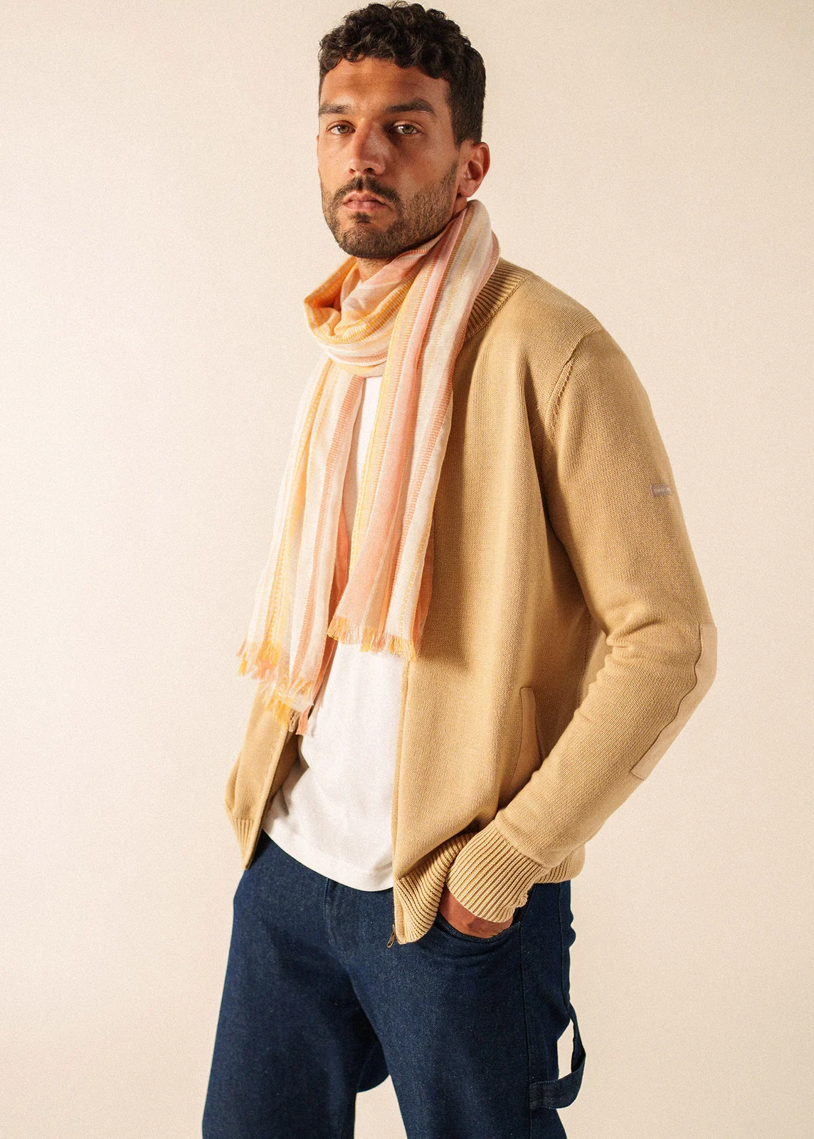 De Saint James Sjaal Foul Mult Ray Terres Melees is een zachte, katoenen sjaal met een stijlvol jacquard streeppatroon. Licht, comfortabel en perfect om nonchalant te dragen op frisse dagen.