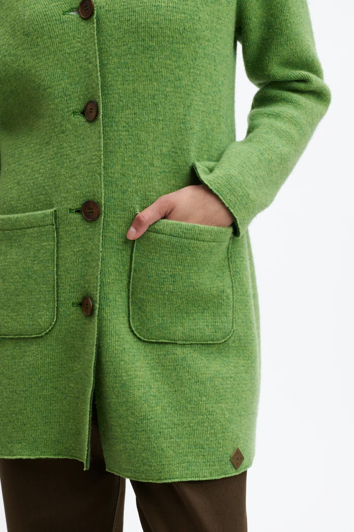 Gemaakt van 100% lamswol, staat de Alina jas garant voor natuurlijke isolatie en ademend vermogen. Het zachte materiaal voelt aangenaam aan op de huid en houdt je warm, zonder te zwaar te zijn. Dankzij de opgestikte zakken en de klassieke knoopsluiting heeft de jas een tijdloze uitstraling die moeiteloos past bij zowel casual als meer geklede outfits.