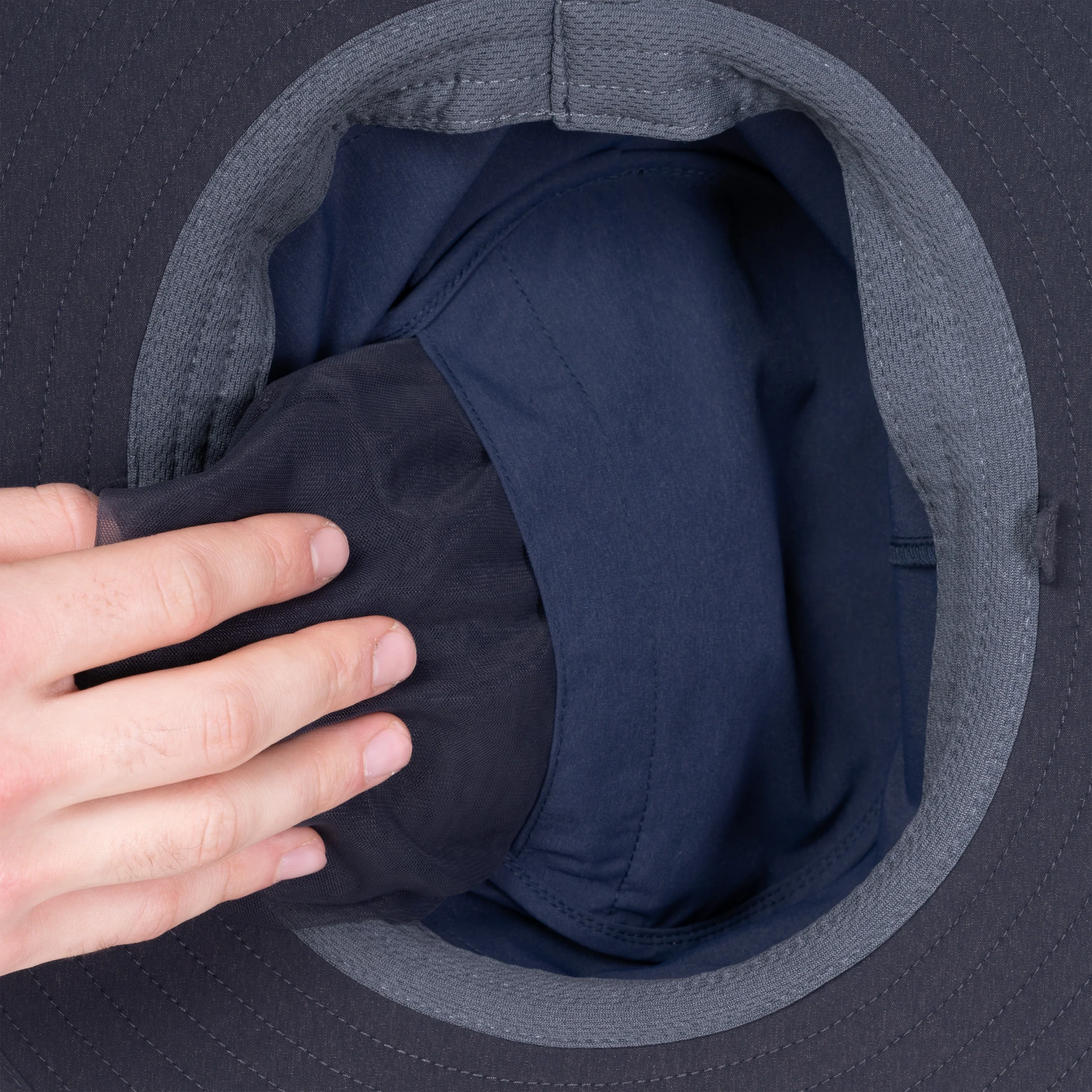 - Verborgen Muggennet: In de top zit een fijnmazig insectennet. Drapeer het over de rand en snoer het met het koord onderaan vast om je schouders voor een insectenvrije zone.